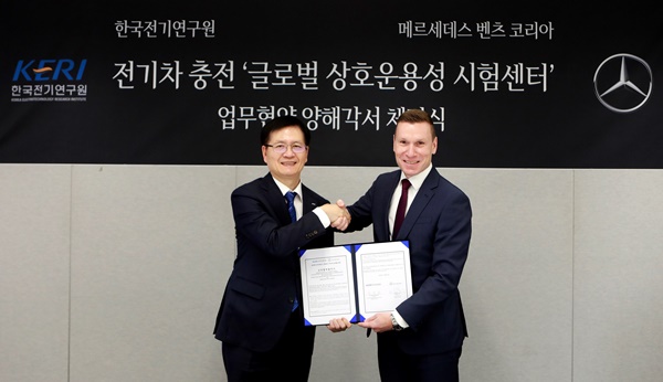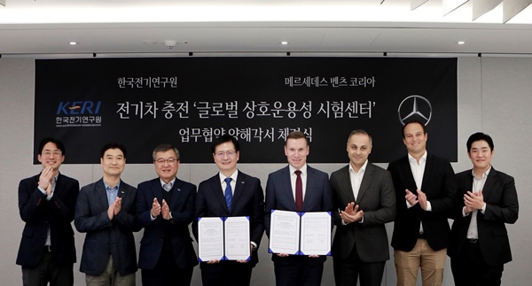 한국전기연구원이 수입 완성차 브랜드 중 처음으로 메르세데스 벤츠 코리아와 체결한 이번 업무 협약을 통해 양측은 ▲전기차 충전 시스템의 적합성과 상호운용성을 향상시키기 위한 협력 체계를 구축하고 ▲글로벌 상호운용성 시험센터의 최초 시험장 구축 및 초기 운영을 지원하기로 약속했다.