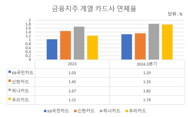 다만 연체율도 함께 늘었다. 3분기 연체율이 가장 높은 곳은 하나카드다. 하나카드의 3분기 연체율은 1.82%로 전년 동기 대비 0.15%p 증가했다.