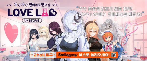 스토브는 스마일게이트 부스에서 연애세포를 깨워주는 연구실이라는 콘셉트로 러브랩을 운영한다.