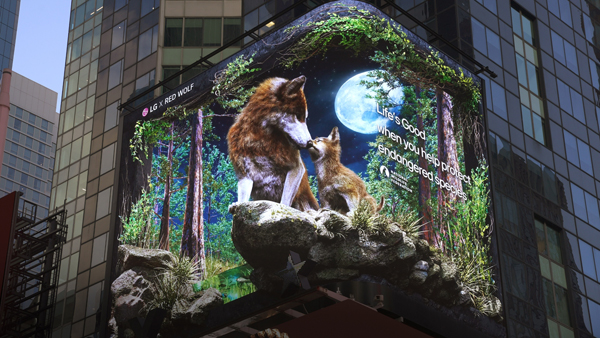 LG전자는 현지시각 9일 미국 뉴욕 타임스스퀘어 전광판에서 ‘LG와 함께하는 위기 동물 보호 캠페인(The LG Endangered Species Series)’의 신규 영상을 공개했다.