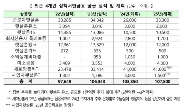 이에 따라 금융위는 4대 서민금융정책 방향을 제시했다. 우선 정책서민금융 공급의 확대다. 지난해 10조 4000억원 수준에서 올해 10조 8000억원 수준으로 확대해 정책서민금융을 공급할 계획이다. 올 상반기 중 주요 정책 서민금융상품 공급을 조기 집행하는 등 자금을 탄력적으로 운영할 계획이다.