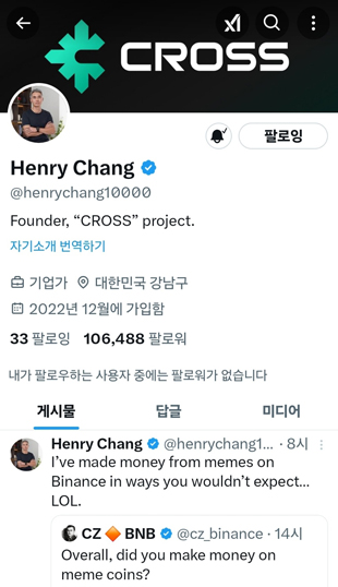(서울=NSP통신) 이복현 기자 = 액션스퀘어에 합류한 장현국 대표의 X(구 트위터) 계정이 2025년 1월 6일 첫 게시물 이후 약 3주 만에 팔로워 10만명을 넘어섰다.