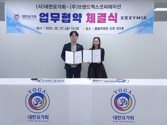 (서울=NSP통신) 박유니 기자 = 브랜드엑스코퍼레이션은 대한체육회 산하 대한요가회와 요가 문화 발전과 건강한 라이프스타일 확산을 위한 업무협약(MOU)을 지난 7일 체결했다.
