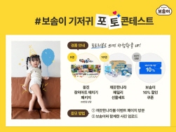 이번 프로모션은 ‘보솜이 기저귀 포토 콘테스트’는 보솜이 기저귀를 사용하는 온라인 몰 회원이라면 누구나 참여 가능하다. 보솜이 기저귀를 착용한 아이의 모습을 자유롭게 촬영한 후 이벤트 페이지를 통해 응모하면 된다.