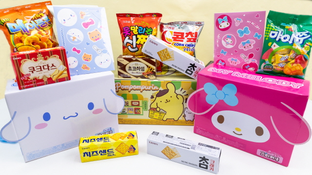 구성은 자체 판매 채널을 분석해 어린이들에게 가장 인기 있는 제품들이다. 제품구성의 경우 ▲마이멜로디·시나모롤 백팩은 C콘칲, 콘말차 등 6가지 ▲헬로키티와·폼폼푸린 스위트샵은 하임, 신짱 등 스낵과 비스킷이다.