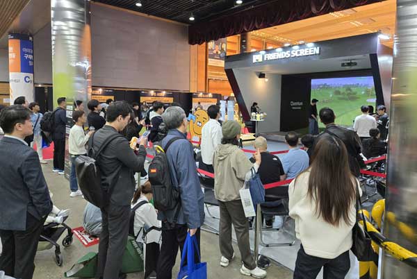 창업지원 설명회장을 찾은 1600여 명의 관람객이 카카오VX의 스크린 골프 시스템 프렌즈 스크린 퀀텀(Q)의 다양한 첨단 기술에 관심을 나타냈다.