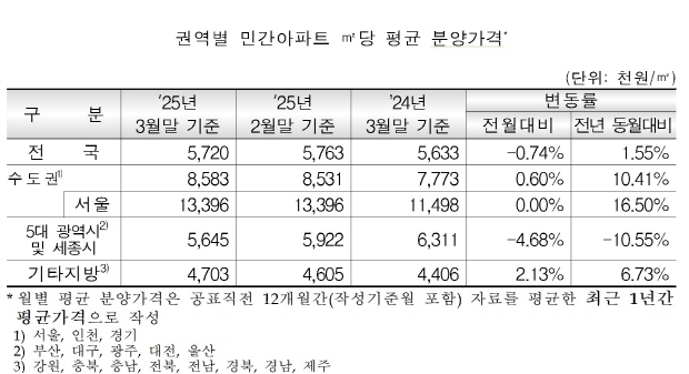 (서울=NSP통신) 강은태 기자 = 3월 전국주택가격동향조사 결과 매매가격지수는 전국(0.01%), 수도권(0.15%), 서울(0.52%)은 상승, 지방(-0.12%)은 하락했다.