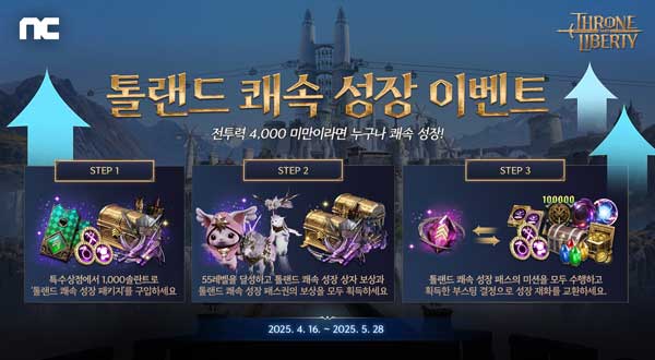 (서울=NSP통신) 이복현 기자 = 엔씨소프트(036570)의 MMORPG ‘THRONE AND LIBERTY(개발 퍼스트스파크 게임즈, 대표 최문영)가 ‘톨랜드 쾌속 성장’ 이벤트와 신규 콘텐츠를 업데이트했다.