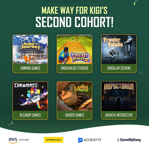 KIGI는 인도 전역에서 약 350개 이상의 기업이 지원했으며, 엄격한 선발 과정을 거쳐 ▲클린업 게임즈(Kleanup Games) ▲아드바이타 인터랙티브(Advaita Interactive) ▲싱귤러 스킴(Singular Scheme) ▲스매시 헤드 스튜디오(Smash Head Studio) ▲언와인드 게임즈(Unwind Games) ▲진저 게임즈(Ginger Games) 등 총 6개의 스타트업이 최종 선정됐다.