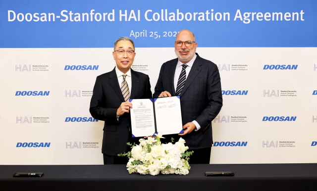 두산은 이러한 피지컬 AI 추진의 일환으로 최근 미국 스탠포드 대학의 연구소인 HAI(Human-Centered AI)와 산학 협력 파트너십을 맺었다. 이 자리에는 박지원 두산그룹 부회장과 제임스 랜데이(James Landay) HAI 공동연구소장 등이 참석했다.