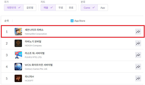넷마블, 세븐나이츠 리버스 출시 7시간만에 애플 매출 1위 달성