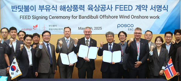 (서울=NSP통신) 강은태 기자 = 포스코이앤씨는 노르웨이 국영 에너지 기업 에퀴노르(Equinor)와 ‘울산 반딧불이 해상풍력사업’의 기본설계(FEED, Front-End Engineering Design) 계약을 체결했다고 29일 밝혔다.