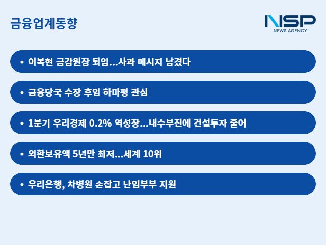 (서울=NSP통신) 강수인 기자 = 새 정부의 출범에 발맞춰 금융당국과 금융기관 수장들의 물갈이도 시작됐다. 이날 이복현 금융감독원장과 강석훈 산업은행 회장이 자리에서 물러났다.