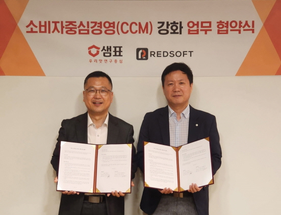 김수동 샘표식품 경영혁신본부장(왼쪽), 조용현 레드소프트 대표 (사진 = 샘표 제공)