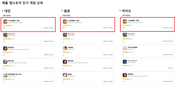 그라비티, 라그나로크 IP 타이틀 2종 대만·홍콩·마카오 지역서 인기