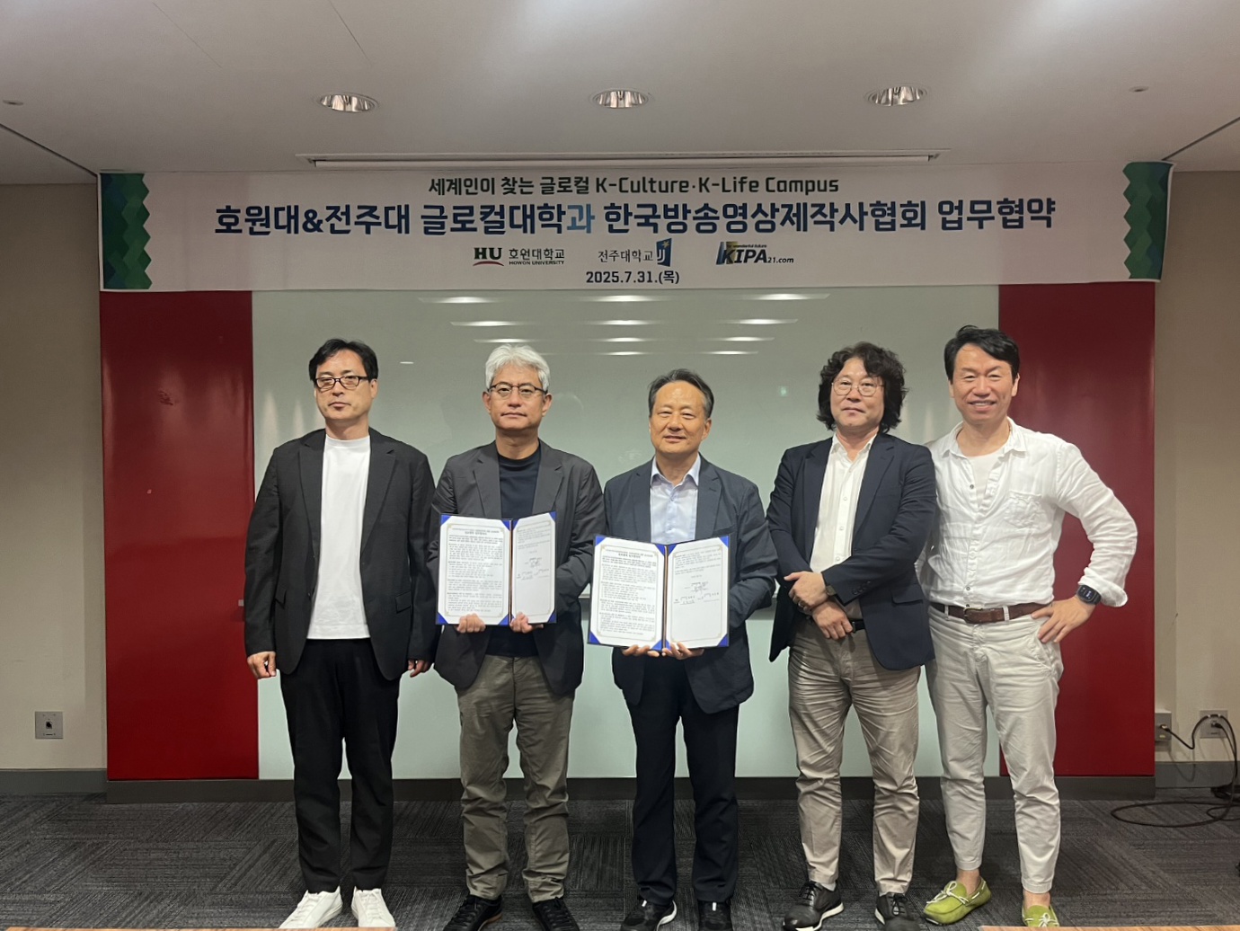 (서울=NSP통신) 김승철 기자 = 호원대학교와 전주대학교 연합이 한국방송영상제작사협회(이하 KIPA)와 로컬의 글로벌화를 위한 새로운 K-콘텐츠 프로젝트 및 인재 양성을 위한 전략적 업무협약(MOU)을 체결했다.