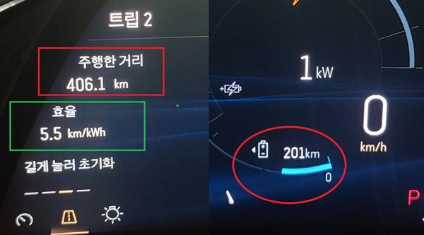 특히 찌는 듯한 폭염에 냉방장치를 모두 가동한 최대 전력을 소비하는 가운데 총 406,1km를 주행한 후 남은 배터리의 전력으로 201km를 더 주행할 수 있어 한번 충전한 후 607km까지 주행 가능하다는 단순 계산이 가능해 국내에서는 어디든 재충전 불편 없이 여행이 가능하다는 것이 확인돼 좋았다.