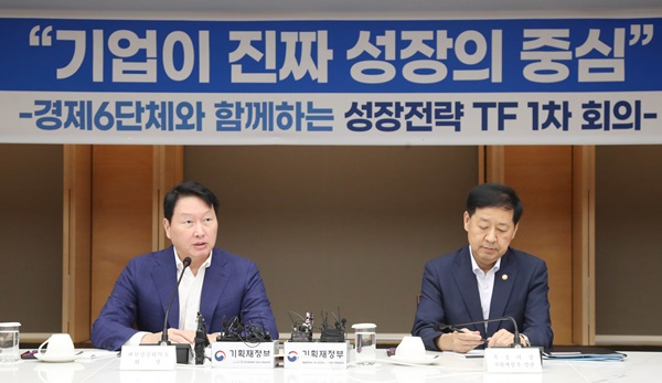 (서울=NSP통신) 강은태 기자 = 구윤철 부총리 겸 기획재정부 장관이 최태원 대한상의 회장 등 경제단체들과 갖은 성장전략 TF 1차 회의에서 배임죄를 금전벌 등으로 전환하고 기업 CEO의 형사처벌 리스크를 완화하겠다고 약속했다.
