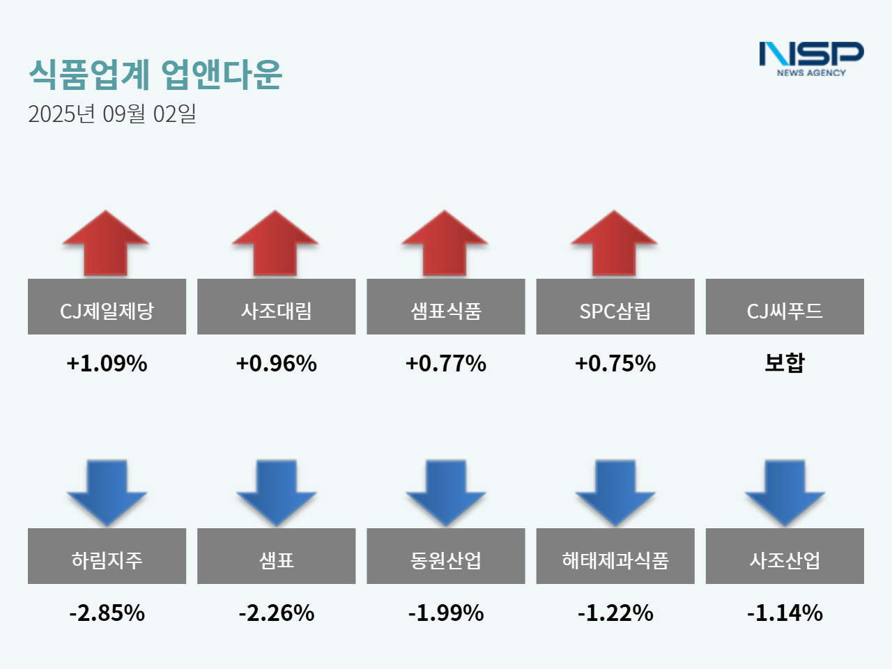 (서울=NSP통신) 옥한빈 기자 = 2일 코스피(+0.94%)와 코스닥(+1.15%)은 모두 상승했다. 이 가운데 식품주는 전거래일 대비 0.02% 하락했다. 식품주는 90종목 가운데 43종목이 상승, 42종목이 하락했다. 보합은 5종목이다.