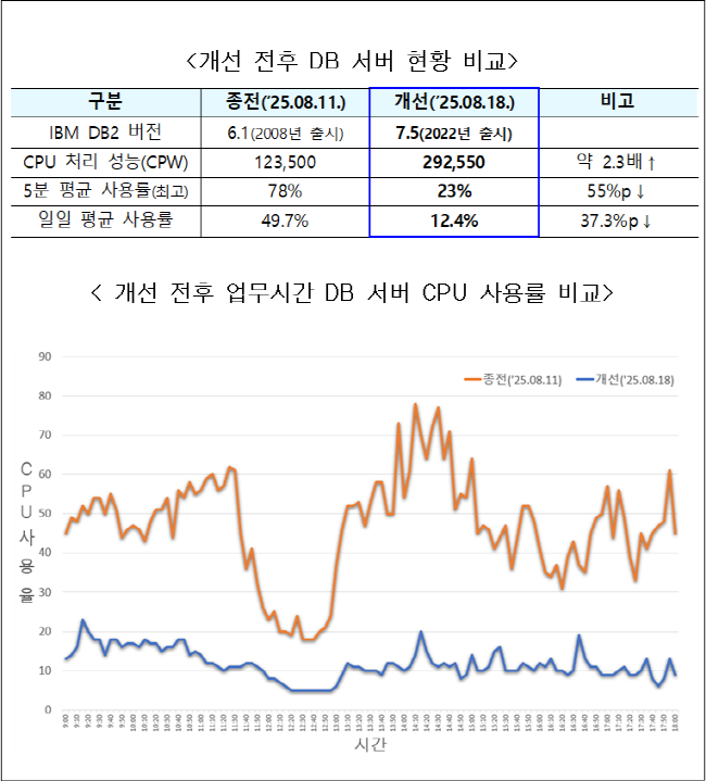 또한 대용량 데이터 조회 기능을 별도시스템으로 이관하고 외부 전문가를 투입해 358개 과부하 유발 프로그램을 검출·최적화하는 등 소프트웨어적 병목 요인을 해소했다.