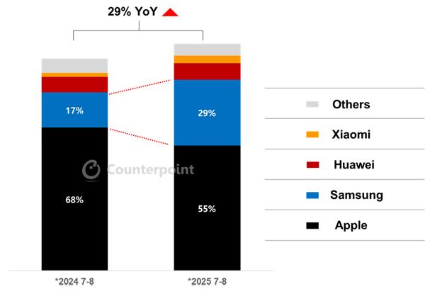 (서울=NSP통신) 이복현 기자 = 2025년 7~8월 글로벌 스마트폰 시장이 판매량 기준 전년 동기 대비 2% 성장한 것으로 나타났다.