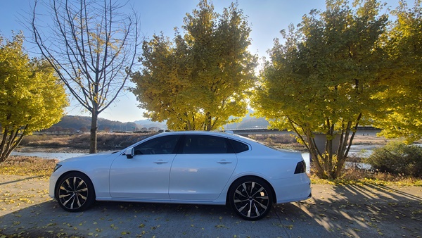 시승에 사용된 볼보 S90 B5 모델은 가솔린 기반 48V 마일드 하이브리드 엔진과 8단 자동 기어트로닉 변속기 조합으로 최고 출력 250마력, 최대 토크 35.7kg·m의 성능을 갖췄고 엔진과 전기모터 합산의 공인 복합연비는 11.5km/L다.