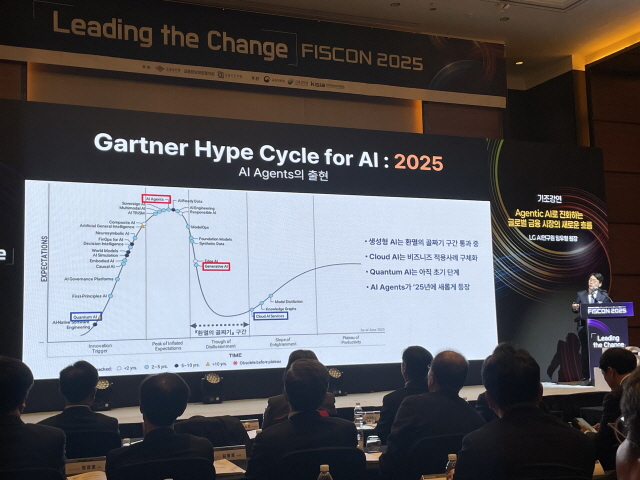 NSP통신-임우형 LG 인공지능 연구원장이 금융보안원이 주최한 여의도 콘레드 서울 호텔에서 개최된 FISCON 2025에서 에이젠틱 인공지능(Agentic AI)으로 진화하는 글로벌 금융시장의 새로운 흐름을 주제로 기조강연을 하고 있다. (사진 = 임성수 기자)