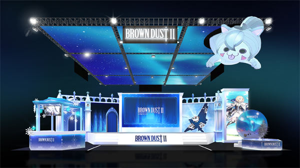 브라운더스트2는 눈 내리는 겨울 왕국 콘셉트의 단독 부스를 마련하고, 거대 타워 LED를 통해 2.5주년 바니걸 콘셉트 등 캐릭터 영상을 선보인다.