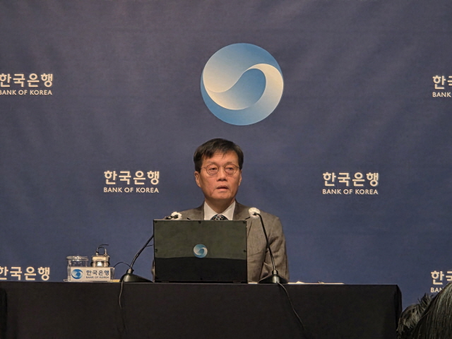 27일 이창용 한국은행 총재가 통화정책방향회의 직후 여린 기자간담회에서 기자들의 질문에 답변하고 있다. (사진 = 강수인 기자)