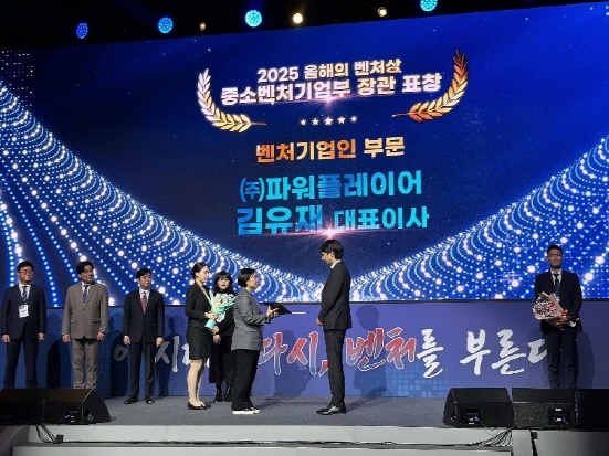(서울=NSP통신) 박유니 기자 = 파워플레이어의 김유재 대표가 ‘2025 올해의 벤처상’ 중소벤처기업부 장관 표창(벤처기업인 부문)과 함께 ‘500만불 수출의 탑’을 수상했다.