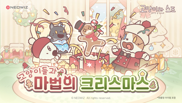 (서울=NSP통신) 이복현 기자 = 네오위즈(095660)가 모바일 방치형 게임 고양이와 스프에서 크리스마스 시즌을 맞아 대규모 업데이트를 진행했다.