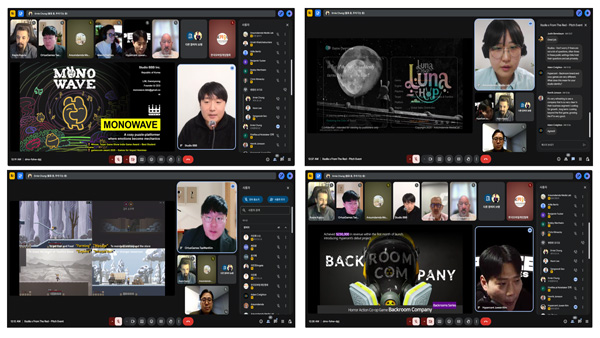 행사에는 국내·커뮤니티 부문 선정작 중 최종 선발된 4개 팀이 참여해 힐링 어드벤처 ‘루나홉’(아름담다), 협동 공포 게임 ‘백룸 컴퍼니’(하이퍼센트), 전략 시뮬레이션 ‘아르뷔엔의 겨울’(오르투스게임스), 퍼즐 액션 어드벤처 ‘모노웨이브’(스튜디오BBB)를 영문 IR 피치 덱으로 발표했다.