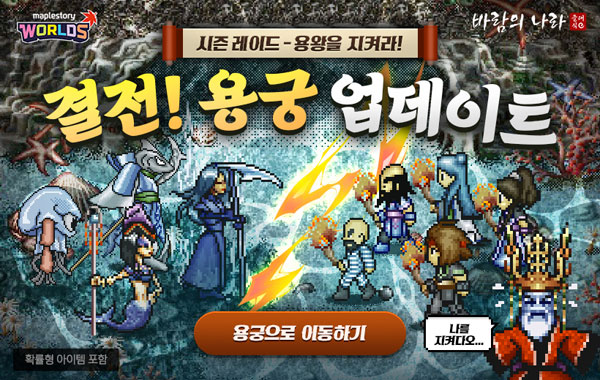 (서울=NSP통신) 이복현 기자 = 넥슨이 18일 메이플스토리 월드 내 오리지널 월드 ‘바람의나라 클래식’에 신규 레이드 ‘결전! 용궁’을 업데이트했다.