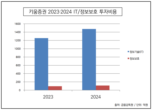 문제는 실적 상승을 동반한 거래량 급증이 포착됐음에도 IT·정보보호 투자 증가 폭은 제한적이었다는 점이다. NSP통신이 민병덕 더불어민주당 의원실에서 입수한 자료에 따르면 키움증권의 IT 투자 예산은 2023년 1255억원에서 이듬해 1476억원으로 소폭 상승했고 정보보호 예산은 같은 기간 94억원에서 109억원으로 집계됐다. 지난 리테일 실적 상승세가 두 배를 상회한 점을 고려할 때 미흡한 수치다.