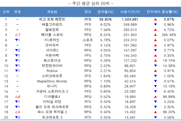 메이플스토리 사용시간 급증…전체 4위·장르 1위