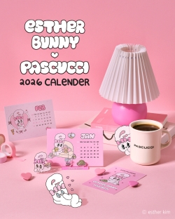 에스더버니는 일러스트레이터 에스더 김이 만든 토끼 캐릭터로 따뜻한 메시지와 귀여운 디자인이 특징이다. 파스쿠찌의 ‘에스더버니 캘린더’는 엽서형 캘린더와 아크릴 스탠드로 구성됐으며 에스더버니 특유의 핑크 컬러와 키치한 감성을 담아 일상 속 작은 설렘을 전한다.