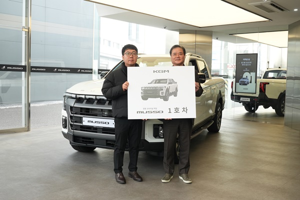 KGM은 지난 19일 KGM 익스피리언스 센터 일산에서 KGM 권교원 사업부문장(전무)을 비롯한 임직원들이 참석한 가운데 ‘무쏘’ 1호차 전달식을 진행했다.