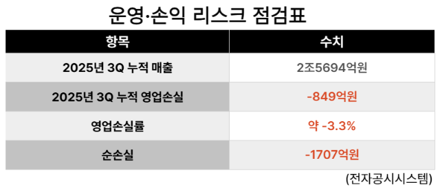 ◆순손실 1707억 원 지속…안전·지배구조 리스크 민감도 확대