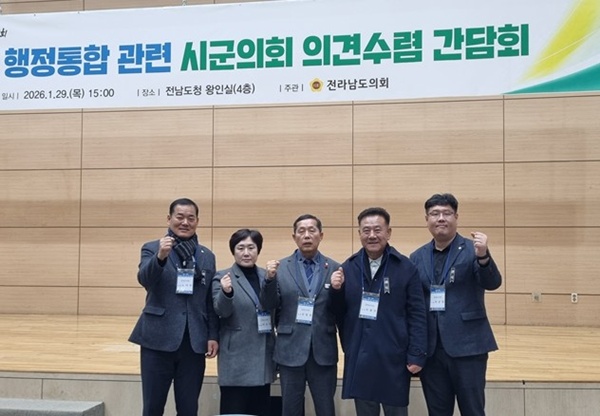 이번 간담회는 전남도의회 주관으로 전남·광주 행정통합이 지역 균형발전과 도민의 삶에 미치는 영향을 종합적으로 검토하고 기초의회 차원의 다양한 의견을 수렴하기 위해 마련됐다.