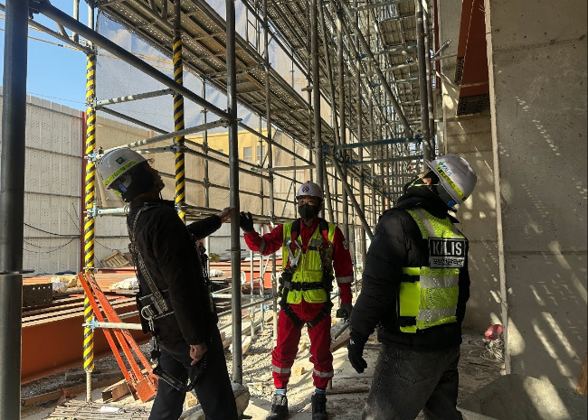 NSP통신-국토안전관리원이 한국비계기술원과 협업해 평택 안중출장소 건립공사현장에서 현장 컨설팅(1월 22일)을 하고 있다.