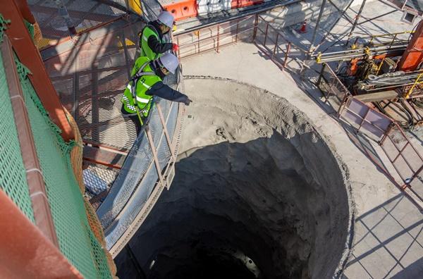 한편 RBM은 수십여 개 칼날이 장착된 헤드를 회전시켜 암반을 뚫는 대형 장비다. 땅을 위에서 파서 들어가는 기존 방식과는 달리 지하 120m에 지름 0.3m의 구멍을 뚫은 뒤, 그 속에 RBM을 집어넣고 아래에서 위로 회전시켜 굴착하는 공법이다. 이때 생긴 구멍을 통해 굴착된 석재를 지하로 배출할 수 있어 석재를 퍼 올리는 후공정을 생략할 수 있다. 이를 통해 공사 과정에서 추락 사고 위험을 낮추고, 공사 기간도 기존 대비 30% 단축했다. 이후 회전 천공기를 장착한 갠트리 크레인(문(門) 모양의 대형 크레인)이 이를 뚫고 지나가면 수직터널의 지름이 10m까지 커진다.