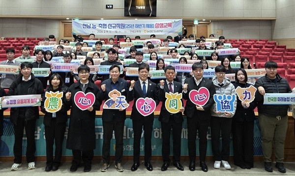 (전남=NSP통신) 김용재 기자 = 농협전남본부(본부장 이광일)는 9, 10일 이틀간 농협구례교육원(원장 기영윤)에서 이광일 본부장, 기영윤 원장 및 2025년 하반기 농축협 신규직원 등 100여 명이 참석한 가운데 전남 농축협 신규직원 상생교육을 실시하였다.