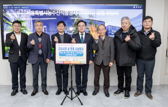 한편 2월 10일 강서구청장실에서 열린 전달식에는 서울농수산식품공사 강서지사 관계자와 농수산물시장, 시장도매인 연합회, 수협중앙회 강서공판장 관계자 등 10여 명이 참석했다.