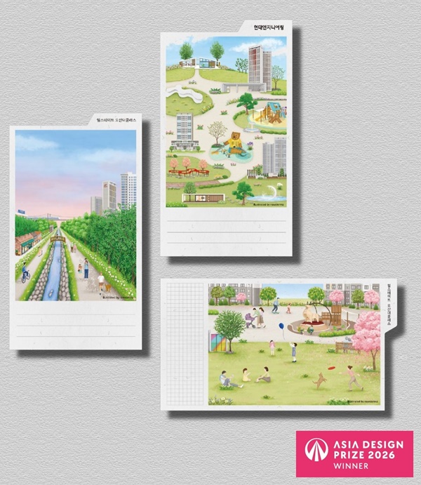 또 ‘My APARTMENT in My Moments’는 지난 2024년 ‘힐스테이트 오산더클래스’분양 시 고객과의 소통을 위해 제작한 엽서형 책갈피와 컬러링 도안이다. 일상 속 아파트 풍경을 감성적인 일러스트로 표현했으며 고객이 직접 색을 채우고 메시지를 담는 경험을 통해 아파트와의 정서적 연결을 강화하고자 했다.