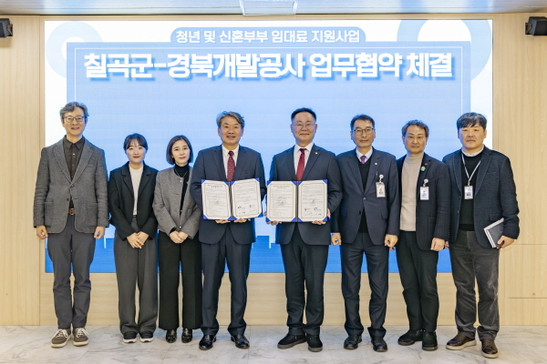 군은 지난 5일 김재욱 칠곡군수와 이재혁 경상북도개발공사 사장이 참석한 가운데 청년 및 신혼부부의 안정적인 정주 여건 조성을 위한 업무협약을 체결했다.