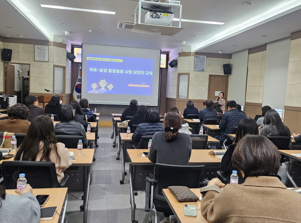 교육 내용은 ▲ 의료·요양·돌봄 통합지원 정책 방향 및 제도 이해 ▲ 읍면동 중심 통합 돌봄 업무 수행 절차 및 역할 정립 ▲ 통합 돌봄 전산시스템 활용 및 실무 처리 흐름 ▲ 질의응답을 통한 현장 적용 방안 논의 등 현장 실무에 즉시 적용할 수 있는 내용 위주로 구성됐다.