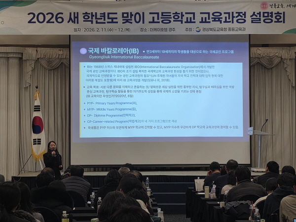 (경북=NSP통신) 조인호 기자 = 경상북도교육청(교육감 임종식)은 11일부터 12일까지 2일간 더케이호텔경주에서 도내 일반고(자율고·과학고·외국어고·체육고 포함) 업무 담당 교원 약 400명이 참석한 가운데 2026학년도 ‘새 학년도 맞이 고등학교 교육과정 설명회’를 개최했다고 밝혔다.