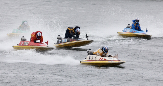 NSP통신-미사경정장에서 열린 경정 경주에 1코스로 출전한 임건이 가장 먼저 결승선을 향해 달려오고 있다. (사진 = 국민체육진흥공단)