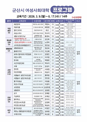 (전북=NSP통신) 김광석 기자 = 전북 군산시 여성사회대학이 오는 24일부터 27일까지 상반기 프로그램 수강생을 선착순 모집한다.