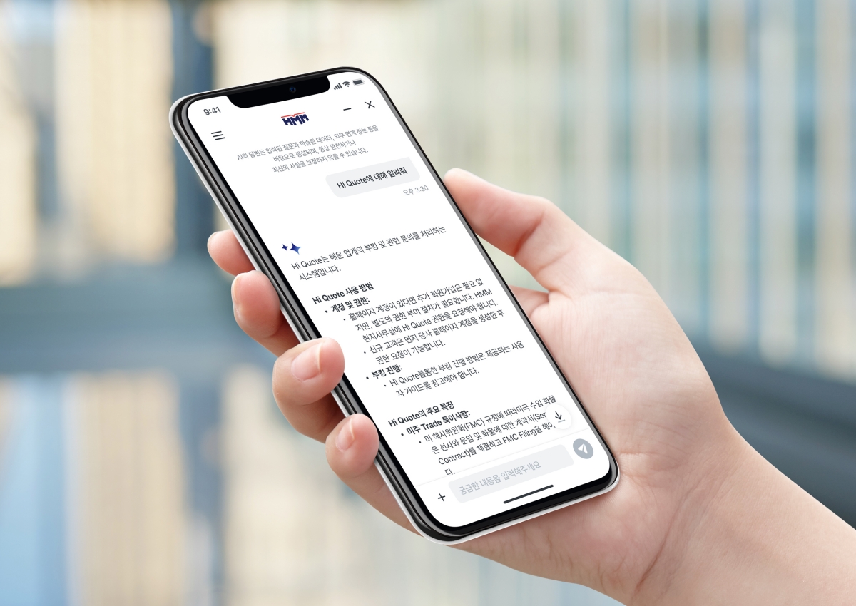 (서울=NSP통신) 최아랑 기자 = HMM이 화주를 대상으로 하는 생성형 AI 기반 챗봇 서비스를 도입해 고객 접점에서의 디지털 전환(DX)을 본격화했다. 선박 운영 효율화를 넘어 고객 경험(CX) 영역까지 디지털 혁신 범위를 확장한다는 구상이다.